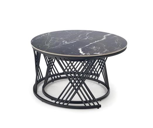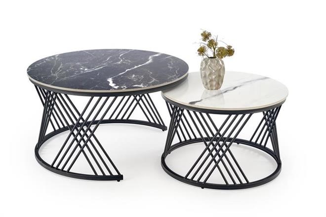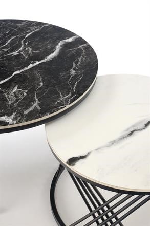 Domingo je moderan klub sto koji spaja kontrast materijala i boja u upečatljiv dizajn. Ploče od keramike dolaze u dvije varijante – crni mermer i bijeli mermer, dok konstrukcija od crnog čelika sa praškastim premazom daje čvrstinu i elegantan izgled.