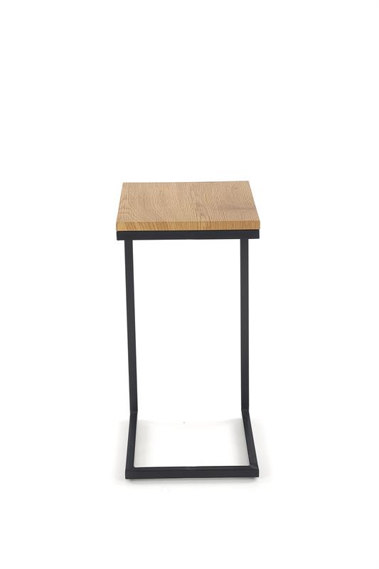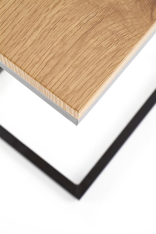 Nysa je moderan klub sto minimalističkog dizajna, idealan kao pomoćni sto uz sofu ili fotelju. Pravougaona ploča u dezenu zlatnog hrasta izrađena od MDF-a donosi toplinu prirodnog drveta, dok crna čelična konstrukcija sa praškastim premazom daje stabilnost i industrijski karakter. Zahvaljujući svojoj kompaktnoj formi i C-konstrukciji, Nysa je praktična i lako se uklapa u savremene enterijere.