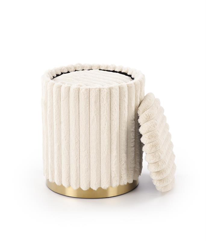 Tapacirani u mekoj tkanini u bež nijansi, ovi taburei unose toplinu i sofisticiran izgled u enterijer. Baza u zlatnoj boji daje dozu luksuza i čini ih upečatljivim dekorativnim elementom.